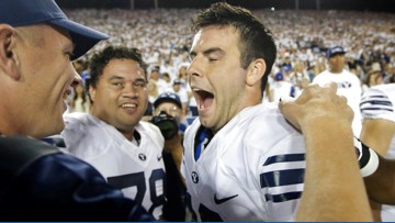 The famous mechanized prop sits above a sign for Cucina Di Paolo Italian restaurant in Boise.